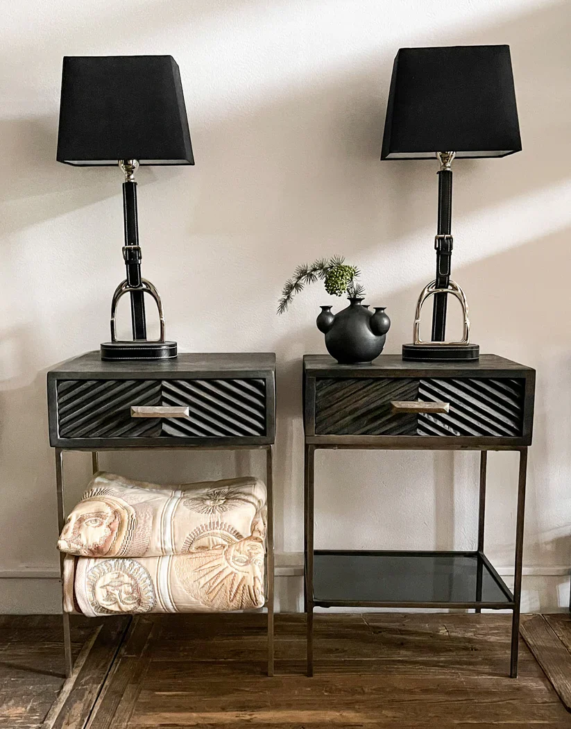 bordlampa stigbygel svart/silver Equestrian Table lamp leather