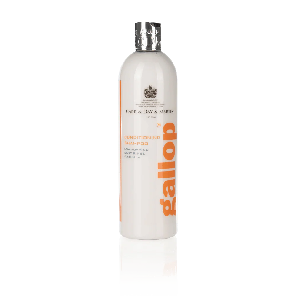 Carr & Day & Martin Gallop® Conditioning Shampoo är ett traditionellt schampo anpassat till hästens hud, som tar bort smuts, svett och fett från pälsen. Det är lämpligt för daglig användning. Det skummar väldigt lite och är därför snabbt att använda och lätt att skölja ur.