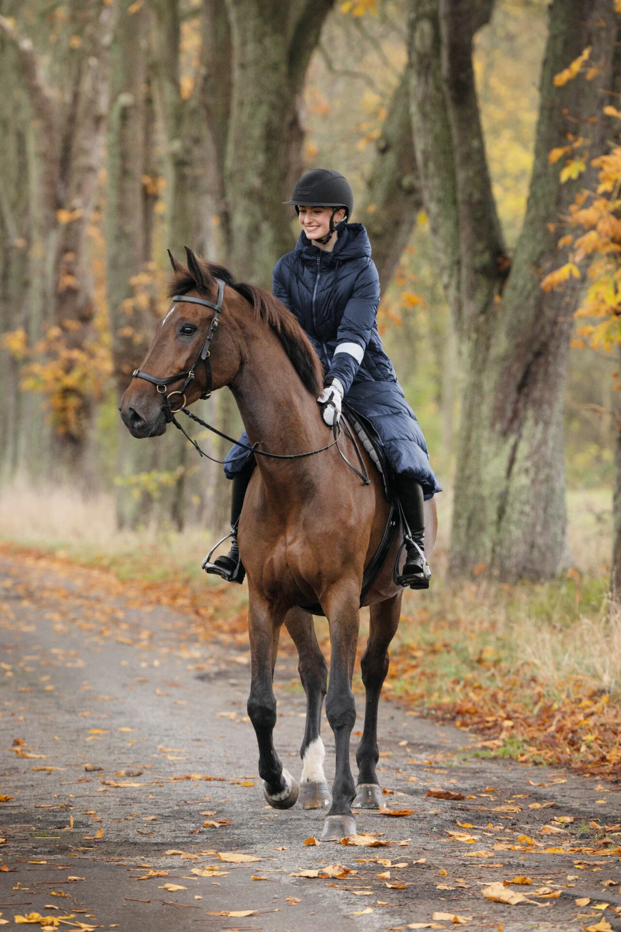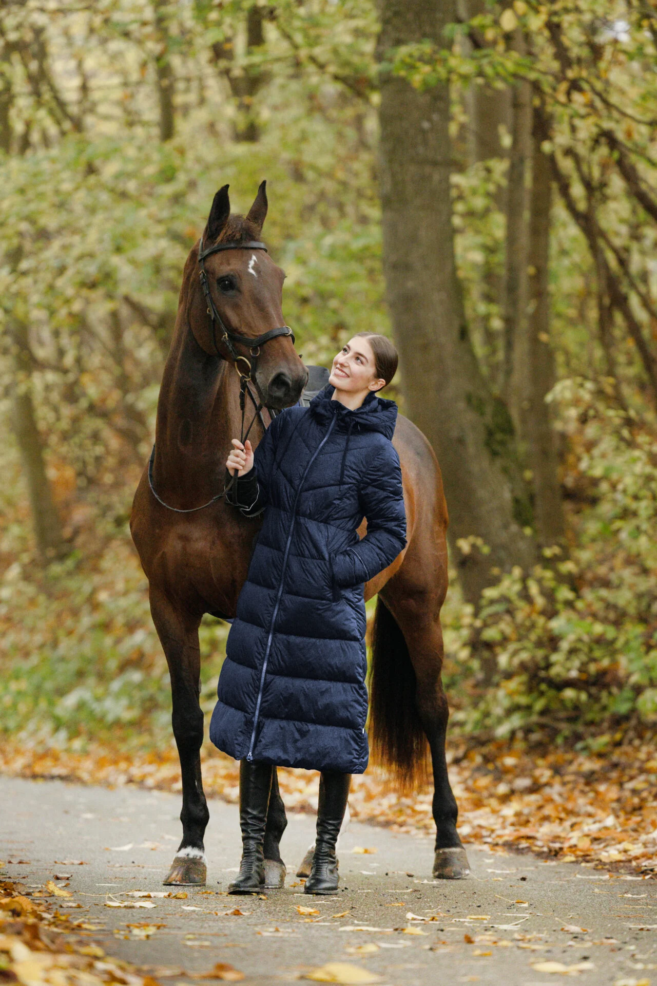 Lång vattentät ridkappa i dammodell från Kingsland, riktigt toppen att rida i under kalla vinterdagar eller när du grejar i stallet med din häst.