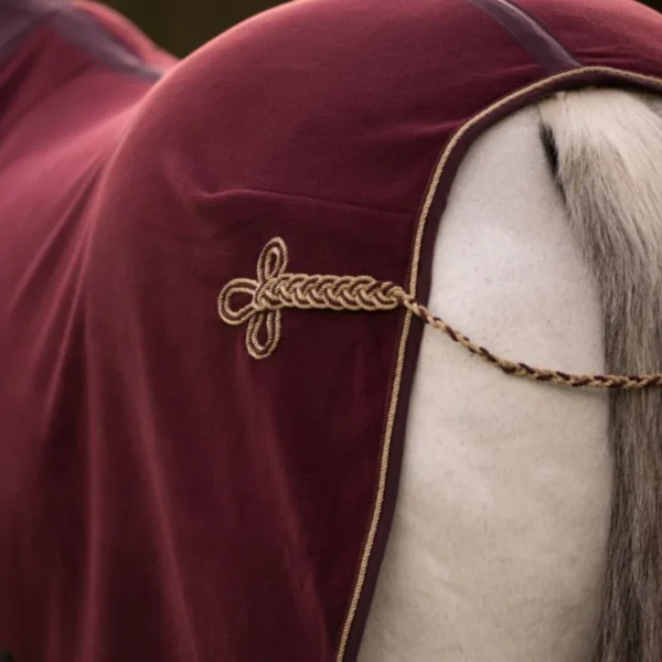 Ett smart och otroligt mångsidigt täcke som har allt. Fleecetäcket är tillverkat av supermjuk, luddfri polar fleece som säkerställer optimal fukttransport och svalka. Det perfekta täcket för både tävling och vardagsbruk. Täcket fästs med remmar under magen som kan sättas fast antingen på insidan eller utsidan av täcket. Elegant finish med en krage av imiterad kaninpäl (faux fur) och broderade, färgkoordinerade kant- och svansband.